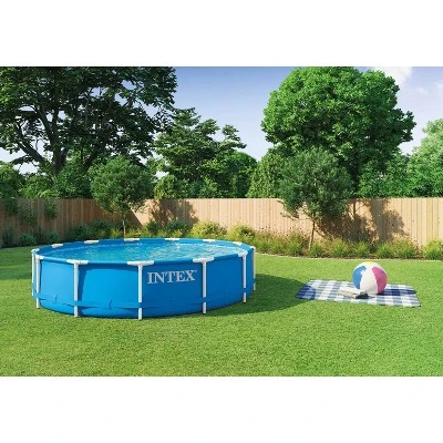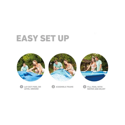 Relish the easy assembly and automated maintenance of the INTEX® Metal Frame Above Ground Swimming Pool. Equipped with simple T-joints for setup—no pins!—this pool can be ready for water in approximately 60 minutes. Its included 475 GPH filter pump with an energy-saving timer then provides automatic daily filtration in two 12-hour cycles. The pool liner boasts a 3-ply, puncture -resistant laminate material for durability.