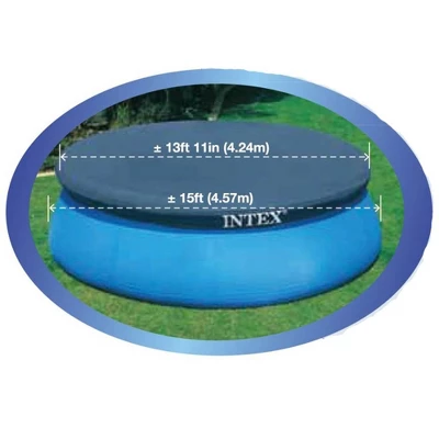 This **Intex 15’x 33″ Easy Set Pool** will give your friends and family infinite hours of refreshing, fun activity and enjoyment. Included with your Easy Set pool is a 530 GPH Krystal Clear cartridge filter pump to help keep your pool clean all summer long. Easy Set pools are much simpler and easier to set up and disassemble than any rigid steel walled pool. This pool will make your backyard the place to be all summer as your family can relax and play. Spend more time swimming in your pool this summer and less time cleaning it with the **INTEX 15′ Easy Set Pool Cover**. This above ground pool cover helps keep your pool free of dirt, insects and debris when not in use. Constructed of high quality, durable 7 gauge, UV resistant PVC vinyl, this pool cover features drain holes to prevent water from accumulating on top. Having your pool covered also helps to prevent evaporation which means adding less water and chemicals to your pool.