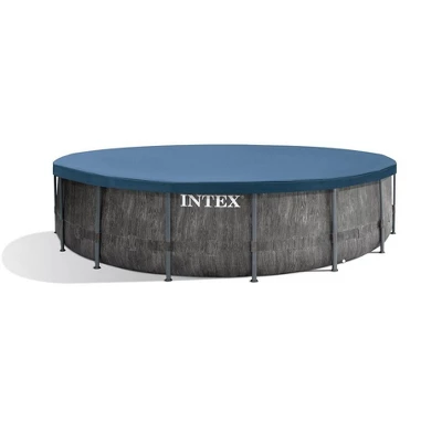 The new 15ft x 48in Intex Greywood Prism Frame Premium Pool features a sophisticated woodgrain pattern that gives it a beautiful look and feel that will complement any backyard. The sturdy frames and the innovative new Polymer T-joints ensure durability and quick and easy assembly. It is constructed with puncture-resistant 3-ply durable material. Hydro Aeration® Technology is incorporated into the cartridge filter pump providing improved circulation and filtration, improved water clarity, and increased negative ions at the water surface. It comes with a 1,000 gal cartridge filter pump, ladder. Water capacity is 4,440 gallons (90%) and it is ready for water in 45 minutes.