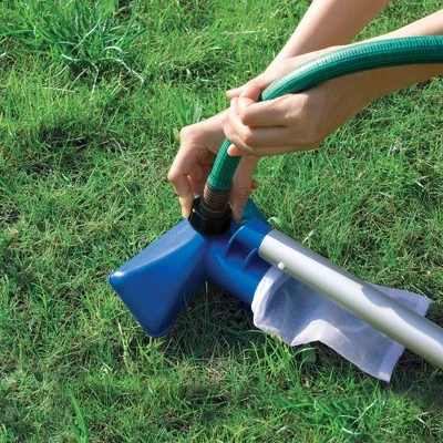 The Intex 12-foot by 12-foot Prism Frame Pool and Pool Maintenance Kit is perfect for hosting all those backyard pool parties this summer.The upscale seafoam blue pool comes with a 530 gallons per hour cartridge filter pump that is able to produce 110 to 120 volts. The added instructional DVD helps you easily set up the pool and get it ready for water in just 45 minutes. With a capacity of 1,718 gallons, you’ll have plenty of space for backyard fun.Prism frame pools are enhanced with strong, powder-coated steel tubing. That makes them durable and easy to assemble. The liner is constructed with puncture-resistant, 3-ply material to ensure that you’ll have years of backyard fun.The Intex Pool Maintenance Kit helps to keep your pool water looking crystal clear with the cleaning essentials.Attach the vacuum to the 94 inch telescoping pole. Simply connect your garden hose and suck debris into the reusable debris bag. Then attach the surface skimmer to the pole and collect leaves and other floating particles. Easily keep your pool clean in a flash with pool maintenance cleaning kit this summer. This is designed for 16 foot and smaller above ground swimming pools with lower side walls. The tool kit includes 94 inch telescoping aluminum shaft for interchangeable skim net head and vacuum heads to get pool clean in a flash.This 2-in-1 pool cleaner takes up less space than a skimmer pole and a pool vacuum, freeing up space wherever you store your pool cleaners. Start your summer off with a stylish above ground pool with the Intex Prism Frame Pool and Maintenance Kit.