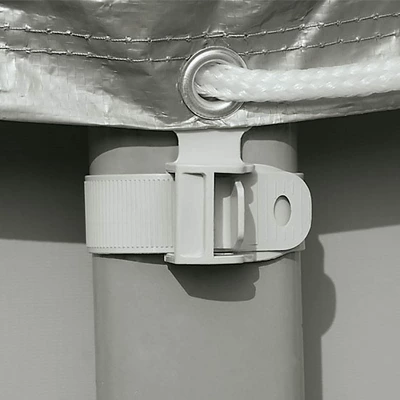 A pool is no such place for debris to be chillin’, so snag this Intex Deluxe Debris Pool Cover and keep your pool as fresh as you are.For 18-foot Intex Ultra Frame pools, this cover features an 8-inch overhang, a tighten rope to keep the cover from blowing off, drain holes to prevent water accumulation, and UV-resistant material to protect it from fading.Keep your pool debris free all summer long with the Intex Deluxe Debris Pool Cover.
