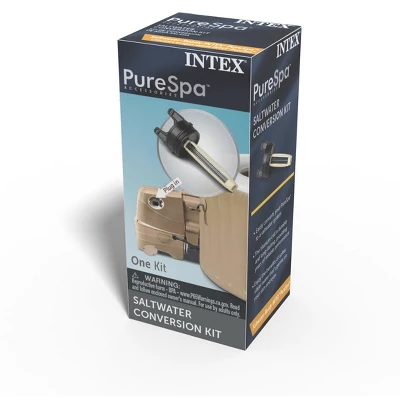Intex 28530 Saltwater Conversion Kit easily converts your PureSpa to saltwater. The titanium cell us durable and long-lasting providing years of reliable performance. Enjoy the benefits of softer, silkier water that’s gentle on your skin and eyes. Measures: 5.6″ x 2.5″ x 2.2″