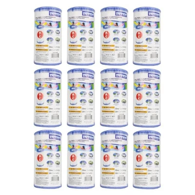 Just relax in your pool, and let the **Intex 530 GPH Filter Pump** take care of the filtration! This cartridge filter pump is the best little work horse you’ll find to keep your pool sparking clean. Set includes six additional replacement Intex **Type A filter cartridges** (in addition to one cartridge included with the pump itself). Great for keeping your pool sparkling clean this year!#####Designed for all 8′, 10′ and 12′ Intex Above Ground Swimming Pools. Also great for Sand-n-Sun, Aqua-Leisure and other pools with 1.25″ diameter hose connections.
