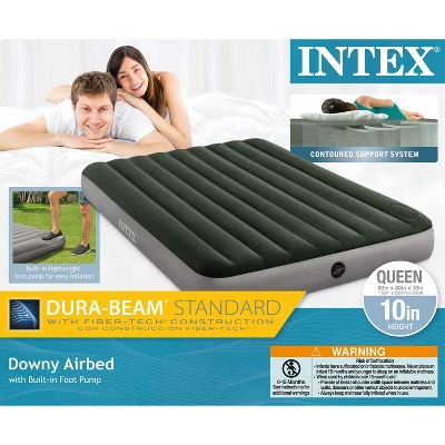 Get a comfortable night’s rest wherever you are with this 2-pack of Intex 64763E Gray Standard Dura-Beam Downy Air Mattress with Built-In Pump in Queen Size. Made for indoor and outdoor multi-use, you get a comfy place to rest whether you’re crashing at your friend’s basement or camping in the mountains. The queen-size design fits up to 2 adults and supports up to 200 pounds, so you can share space with your friends, family, or significant other. The airbed features a standard height and a flocked top with vinyl sides and bottom for water and weather-resistance. The 2-in-1 valve functions as a built-in foot pump for easy inflation and deflation. Strong and lightweight, this Intex 64763E Gray Standard Dura-Beam Downy Air Mattress w/ Built-In Pump in Queen can accompany you on any kind of adventure……