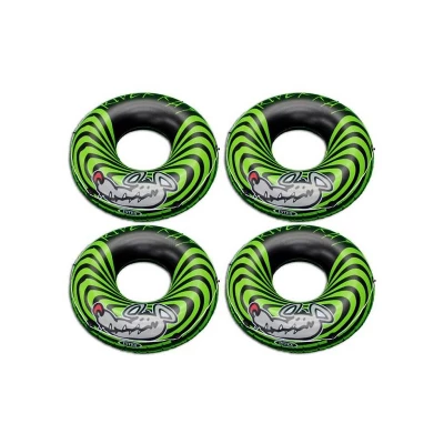 Stand out while you are floating at the lake, beach, pool, or river on this Intex River Rat Inflatable Tube.Enjoy floating around on an Intex River Rat. This inflatable swim tube is ideal for floating, swimming or playing with at the pool, beach, lake or river. Designed with bold stripes and a fun cartoon rat picture, this tube lives up to its name. Sturdy and durable, the tube is constructed with two air chambers with double valves, and an all-around grab line for easy handling and extra convenience on and off the tube.With a tube like this, you’ll look super cool out on the water while you float and splash around with this heavy-duty Intex River Rat Inflatable Tube.