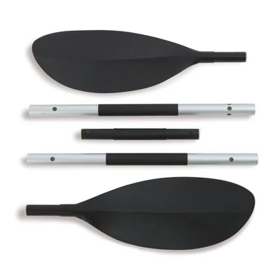 Don’t get caught up a creek without a paddle. With this Intex 86-Inch Lightweight Aluminum Inflatable Kayak Paddle, you’ll have the perfect lightweight 2-sided paddle for your inflatable Intex kayak.This kayak paddle has 3 positions of feather adjustability and is designed to give you the best grip possible on the paddle’s shaft. The paddle is constructed with lightweight aluminum to make maneuvering and transporting on and off the water easier than ever. This kayak oar also measures 86 inches long and has ribbed blades to give you more control as you cut through the water.Whether you’re replacing your paddle or just want an extra in the garage, this kayak paddle is easy to assemble and transport to and from all your water adventures.
