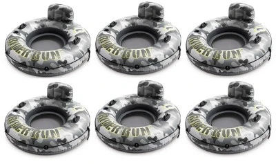 Have fun floating in the pool or at the lake with the Intex Camo River Run I 53-Inch Inflatable Tube – 6 Pack. Designed with a built-in backrest for easy cruising and a mesh bottom that keeps you cool. This fun lounger has two air chambers for added safety, easy-to-use connectors to connect to other floats, and two built-in cup holders to keep your refreshment nearby as you float and relax in the water. An all-around grab rope is included for ease of use. Includes: Built-in backrest. Two built-in cup holders. Easy-to-use connectors. Two heavy-duty grab handles. All-around grab rope. Mesh bottom. Two air chambers. Repair patch. Approximate deflated size: 53in. Built with 18ga vinyl. 220 lb max weight limit.