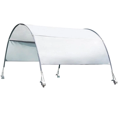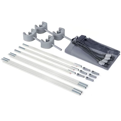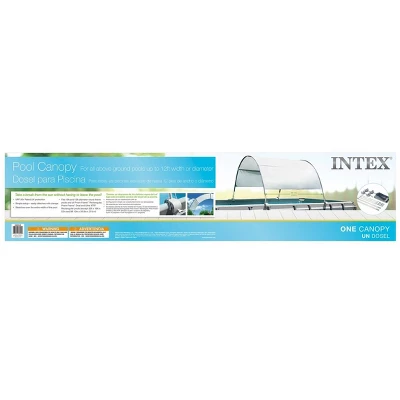 Take a break from the sun without having to leave the pool. Constructed of durable UV protected fabric, this canopy shade boasts a simple design that easily attaches to a range of above ground swimming pools. The sturdy construction withstands wind speed up to 16 3/8 FT Features: UPF 50+ Rated UV protection. Simple setup – easily attaches with clamps. Stretches over the entire width of the pool. Waterproof and wind resistant up to 11 mph. Fits 10ft and 12ft diameter round frame pools and all Prism Frame. Rectangular, Prism Frame Oval and Ultra XTR Rectangular pools (except 32ft x 16 ft x 52 and 9ft 10 in x 5ft 9in x 31 1/2in). Dimensions: 2’H X 8’L X 54″W