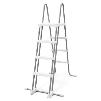 The Intex Pool Ladder is the best choice for your above ground swimming pool. This ladder is a practical, as well as attractive, addition to your pool set.This industry leading swimming pool ladder includes easily removable steps that can be removed from the pool area when it is not in use. To replace these steps, simply set them in the base then snap and lock them into place. It’s constructed from high impact composite material for superior strength and durability. It features an improved support base design to ensure years of use. Assembly is easy with this ladder as the pieces all connect. All in all, assembly only takes minutes.Add the perfect pool accessory to your summer set up with the Deluxe Pool Ladder by Intex.