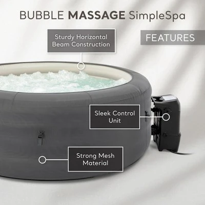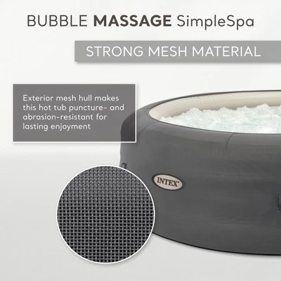 - SIMPLE INDULGENCE – The SimpleSpa Bubble Massage by INTEX makes it super easy to own and enjoy a spa. It provides 100 powerful bubble jets surrounding the interior for a great and soothing massage. Designed for up to 4 people. Cannot be shipped to CA, OR, RI, MA, NJ, ME, NY, NV, MD, or WA.