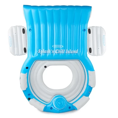 Have all the comfort of the beach while on the water with the Intex Splash N Chill Island Inflatable Pool Float Lounger with Quick Fill Air Pump.This inflatable raft has 6 cup holders and a built-in cooler to keep drinks on hand for everyone. If you’re feeling the sun’s hot rays, hop into the water and hold onto the boarding platform’s grab handles. You can bob alongside the float and easily get back in using the durable grab handles. Oversized backrests make floating extra comfortable for 4 people. This raft comes with an anchor bag that you can fill with sand to keep the float moored and a repair patch kit in case you hit some rough wake.This air pump includes nozzles for 3 common sizes providing maximum function. It’s great for inflating your raft in no time, and it plugs into a standard household electrical outlet, so it’s convenient to use.Have a blast out on the water this summer and chill out in style with your friends and family with the Intex Splash N Chill Island Inflatable Pool Float Lounger with Quick Fill Air Pump.