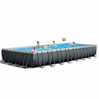 Maximize your pool experience with our largest Ultra XTR Frame pool. Classic rectangular shape, elegant graphite liner with water-blue tile print interior and brilliant white copings will make a fashion statement anywhere. Have an amazing time with family and friends with the spacious pool. This top-of-the-line above ground pool combines high-quality with style offering ease of ownership so that your pool time is truly fun time. It comes with a 2-year warranty on pool liner, frame and filter pump. Includes all of the components you need: Pool, Ladder, Cover, Krystal Clear Filtration and Sanitation system, Deluxe Pool Maintenance Kit and Volleyball Set. Powerful water filtration with included 110-120V Sand Filter Pump & Salt Water System (pump flow rate: 1,600 Gph) with Hydro Aeration Technology for easy maintenance. Powerful protection against rust combining strong galvanized steel with advanced inner and outer powder coating. An innovative steel frame design that optimizes shape and weight distribution for enhanced strength and durability. Composite T-Joints precisely engineered for strength, metal frame protection and easy assembly: the Easy lock System™ that simply snaps together – no tools required. A tough 3-Ply liner with high puncture- and tear resistance. Approximate set-up size: 24ft X 12ft X 52in. Water Capacity: 8,403 gallons (90%). Ready for water in 60 minutes. Age grade: 6+